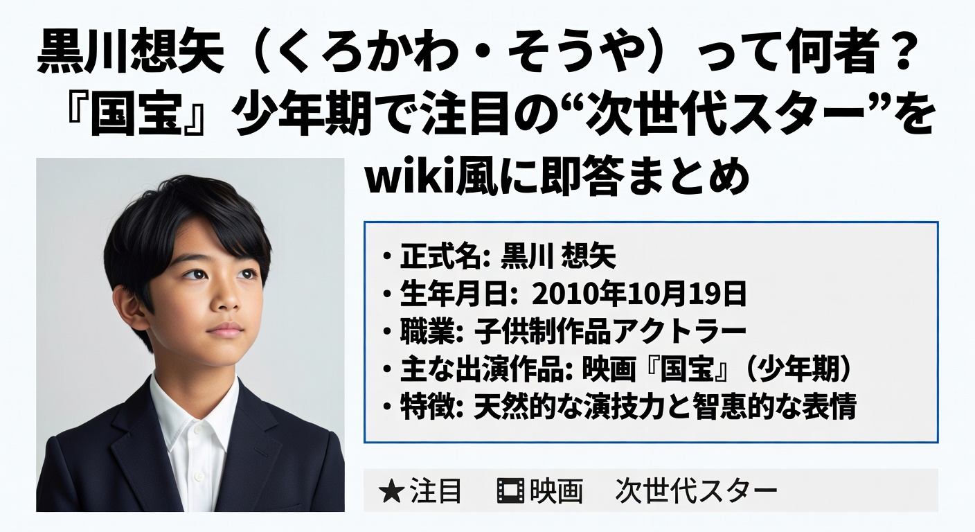 この記事では、黒川想矢さんのプロフィールをwiki風に分かりやすく、最新トピック込みで一気に整理します。
